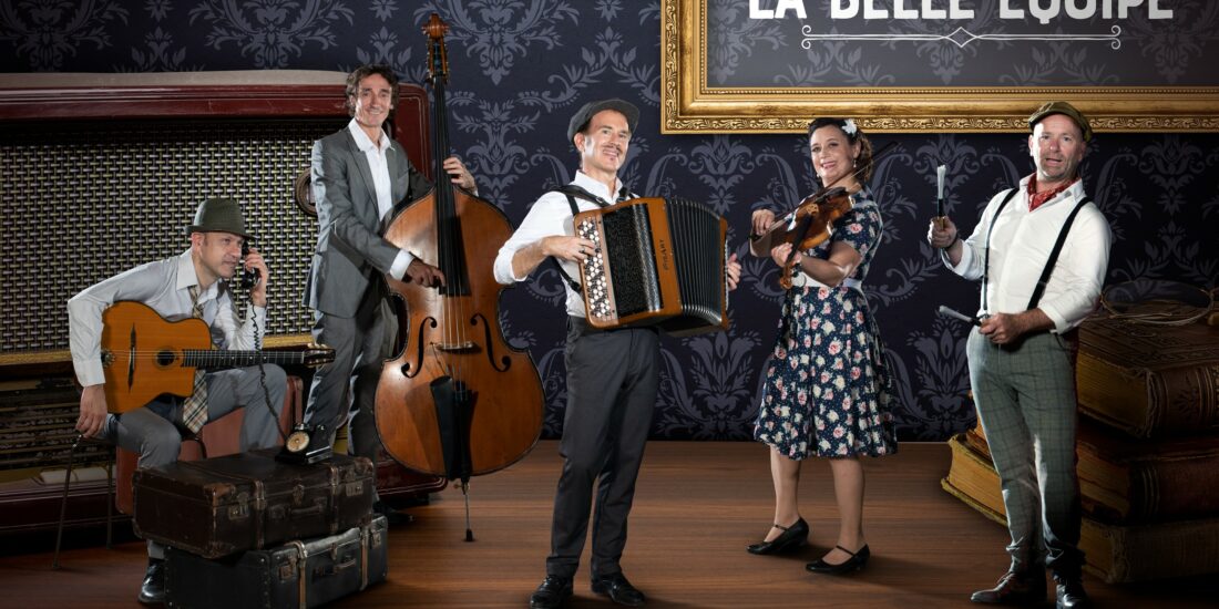 Avec 5 musiciens menés par l’accordéon de Manu, La Belle Equipe de Manu and Co groupe incarne la joie de vivre et l’esprit guinguette. Leur répertoire, entre classiques (Piaf, Brassens, Dutronc…) et créations originales, est une explosion d’énergie contagieuse. Sur scène, leur alchimie transforme chaque concert en fête conviviale, où toutes les générations se laissent emporter.